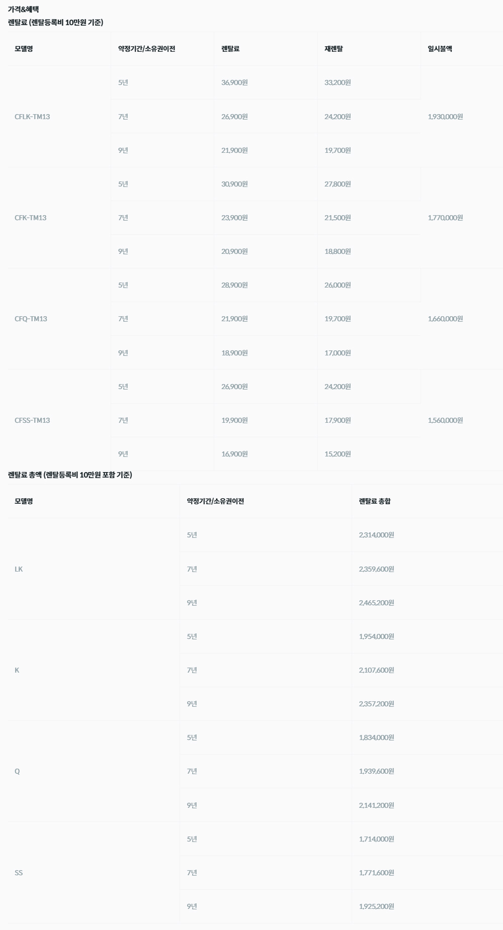 CFSS-TM13 코지 프레임 슈퍼싱글 렌탈 자가관리 3년약정 하얀색 농협카드