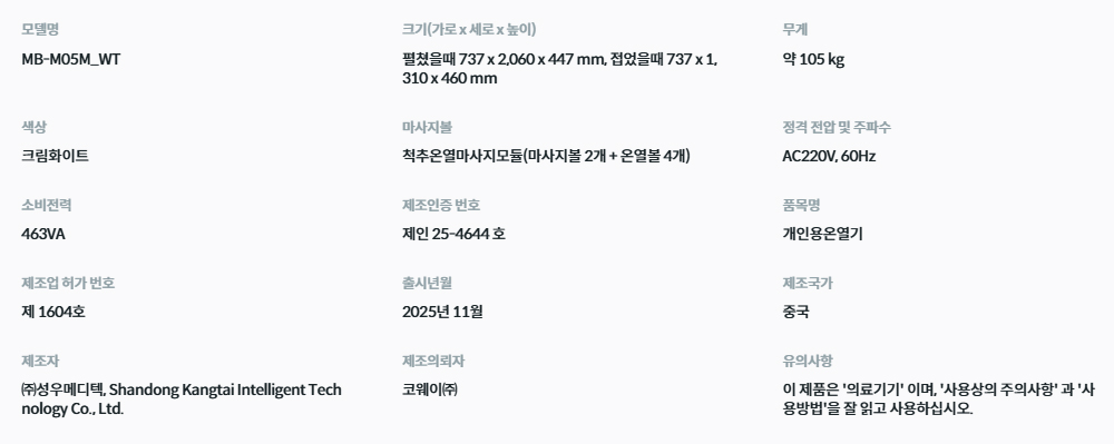 MB-M05M BEREX 리클라이닝 마사지셋 렌탈 자가관리 3년약정 하얀색 농협카드
